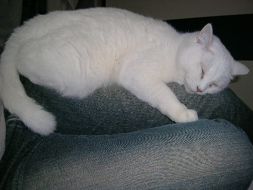 かなりオデブでのっそりとしてる白猫「六花(ろっか」です。