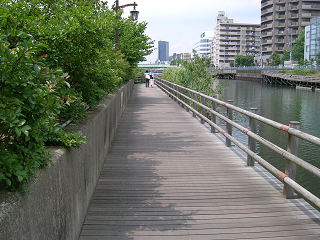 そのまま歩いて進むと、運河の内側に作られた緑道というか橋というか