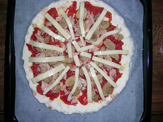 最後にチーズを細長く切って適当に配置